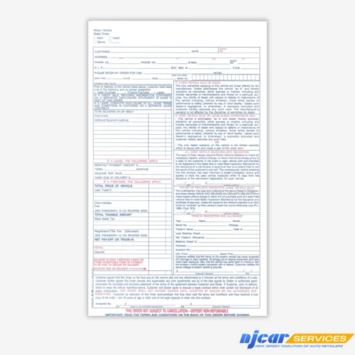 Imprinted Used Car Retail Order Form