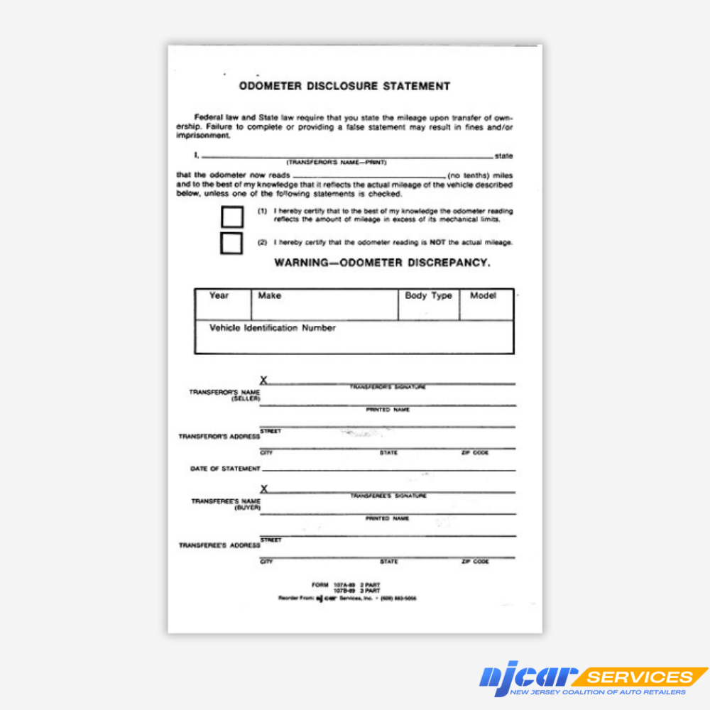 2-Part Odometer Mileage Statement