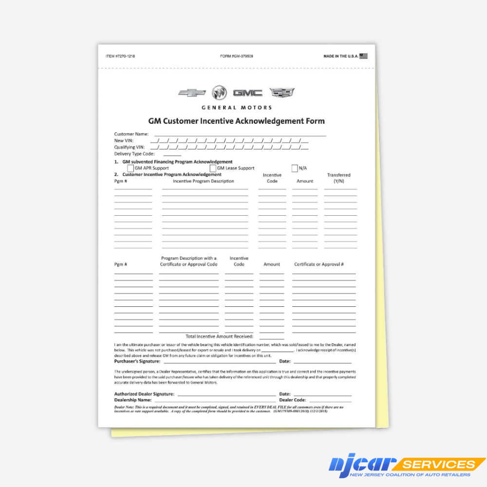 GM Customer Incentive Acknowledgement Form