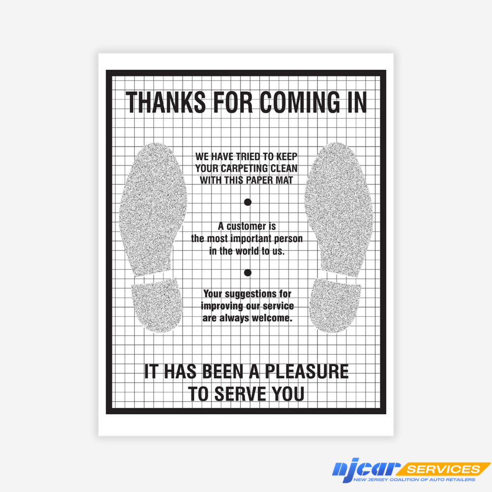 These durable, high wet-strength, poly-backed paper mats feature a black footprint design, perfect for maintaining interior cleanliness during service visits.