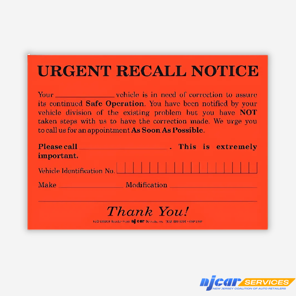 This Urgent Recall Notice really gets attention from your customers.  This bright red fluorescent notice is printed in black ink.