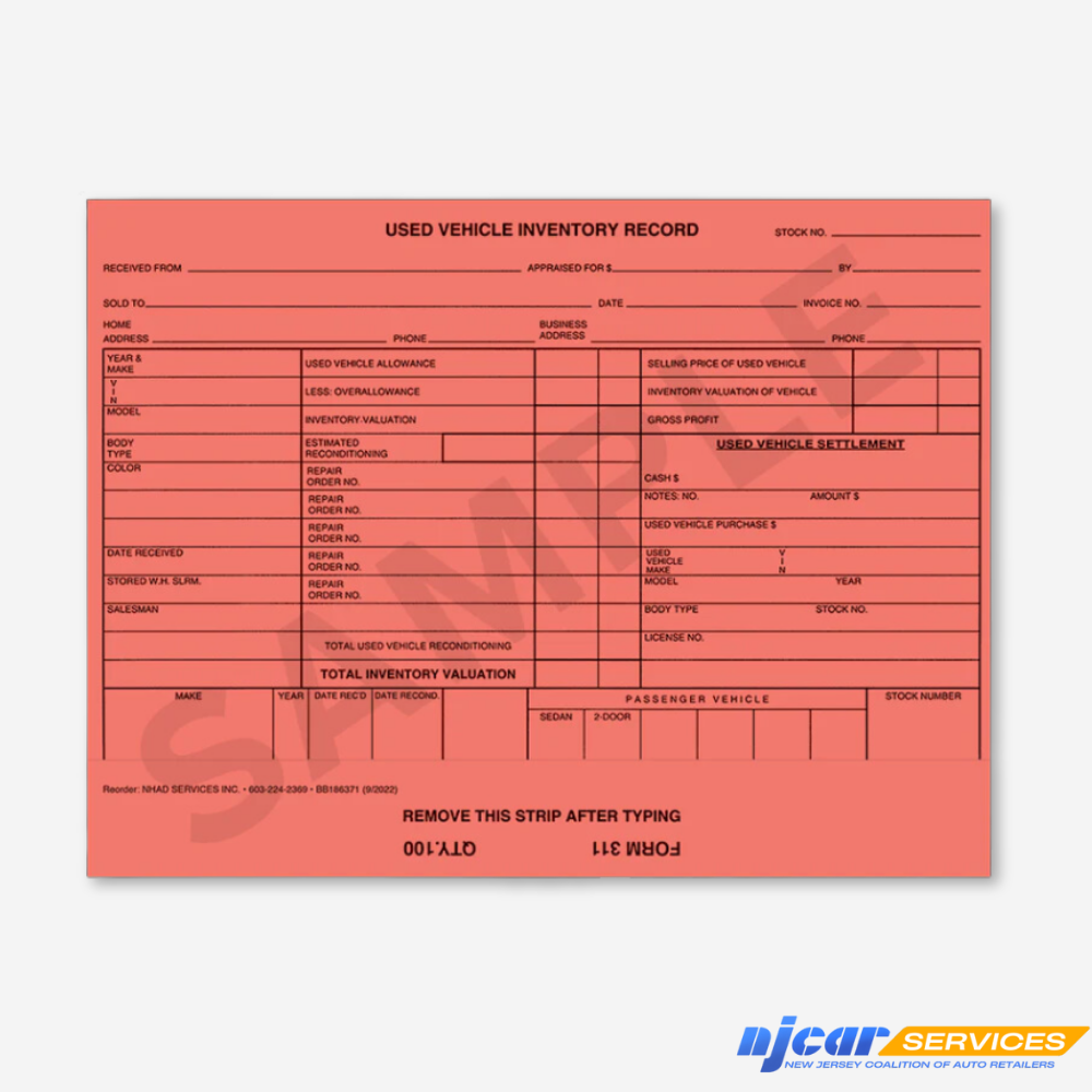 This salmon-colored card helps identify used vehicles at a glance. Designed to fit into the VIS-100 visible inventory binder for quick filing and access.